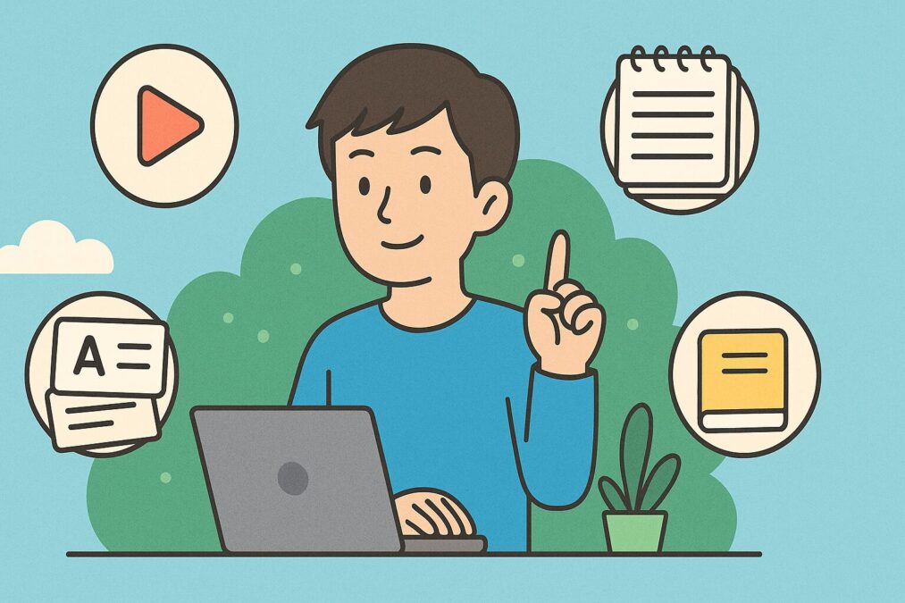 テキストなら目だけの学習になってしまうけど、動画だと「耳からの学習」もできるので、「目」と「耳」から情報のインプットができるのでテキスト学習より脳に定着しやすいですし。
